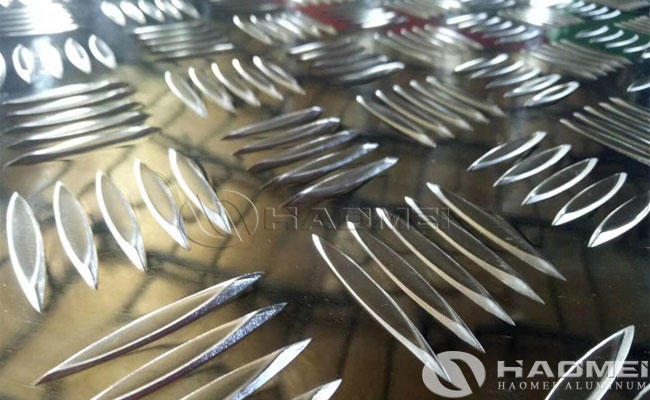 The 5 bar aluminum plate is that the pattern on the surface of the aluminum plate is arranged in parallel according to the five uneven patterns. Each pattern has an angle of 60-80 degrees with other patterns, so this 5 bar aluminum sheet has excellent anti-slip performance. Haomei Aluminum can be customized for special requirements, thickness between 0.8mm-10mm, width within 2500mm, length within 15 meters.