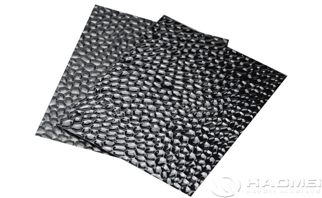 Hammered aluminum sheet can also be called hemispherical patterned aluminum sheet, the surface is small spherical pattern like a small pearl, so this aluminum sheet can also be a pearl patterned aluminum sheet, pebble embossed aluminum sheet or lentils pattern aluminum sheet. It is mainly used in the outside packaging.